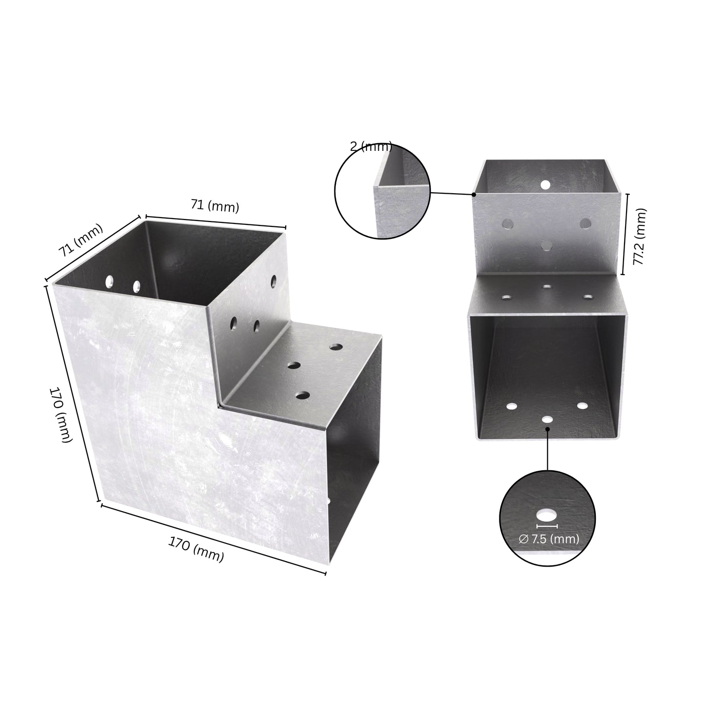 USABILITY - Our post connector brackets are available in various configurations, including 2-post, 3-post, T-shaped 3-post, 4-post, and 5-post options for 70 x 70 mm wooden posts. They’re weather-resistant due to hot-dip galvanised steel, which protects against corrosion, scratches, fading, and weakening and makes them perfect for outdoor use.